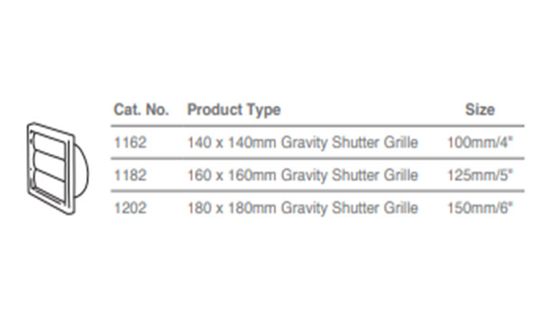 תריס מחומר פולימרי נפתח עם הפעלת המאוורר, מונע חדירת גשם וחדירת אויר חיצוני בזמן כיבוי המכשיר. להתקנה בקיר חיצוני